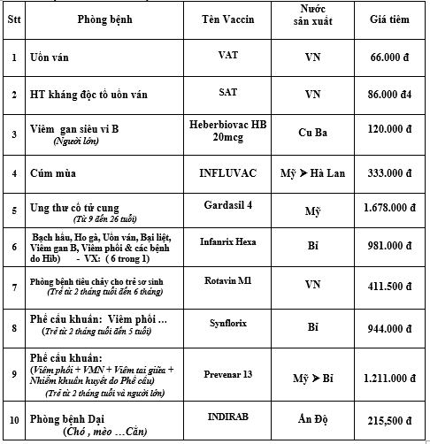 HIỆN ĐANG CÓ CÁC LOẠI VACCIN: